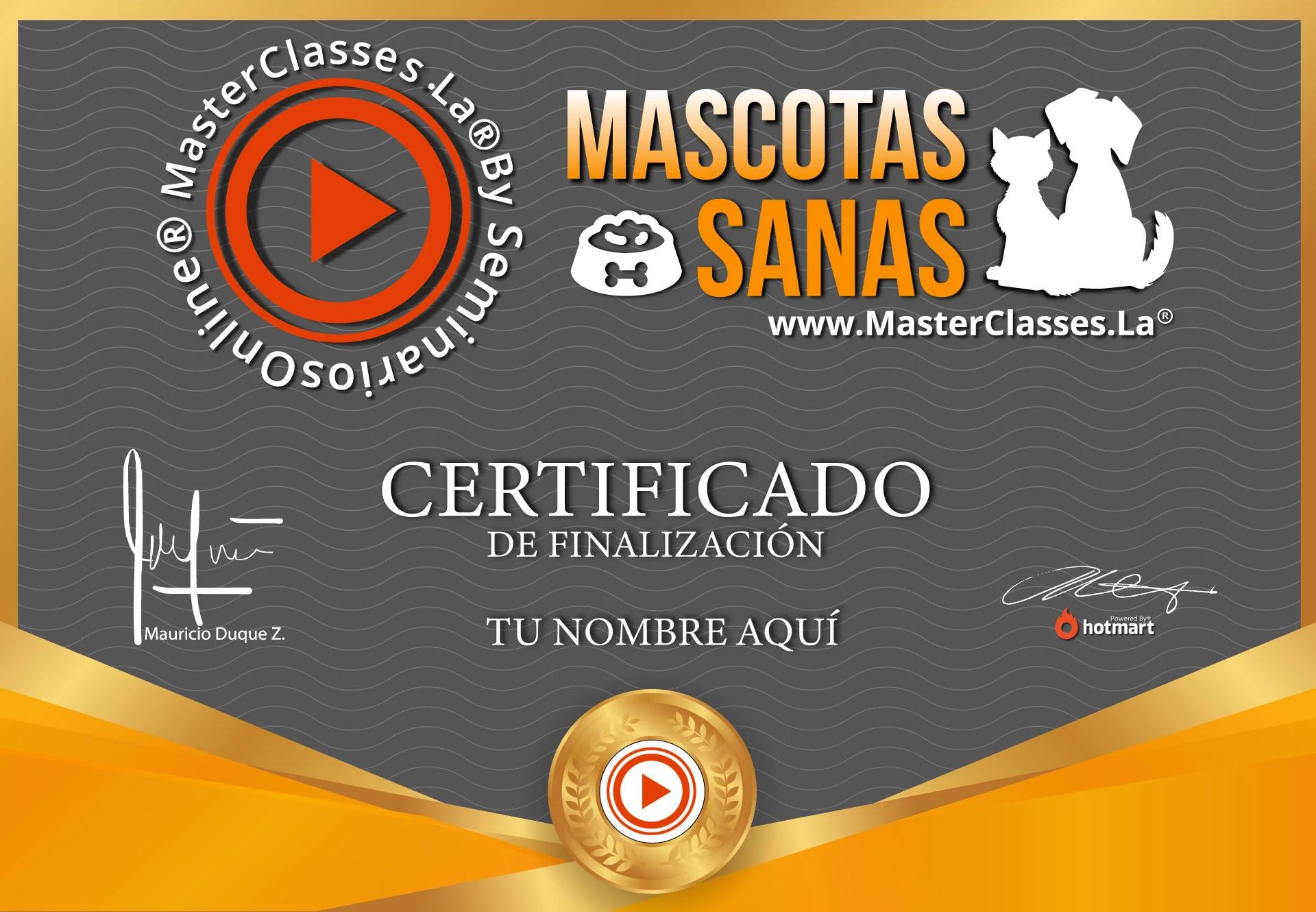 Al finalizar el programa recibirás un certificado de finalización a tú nombre, avalado por Hotmart